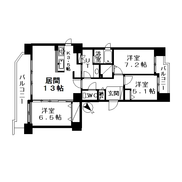 3LDK(LDK16.5帖、洋7.2帖、洋6.5帖、洋5.1帖)