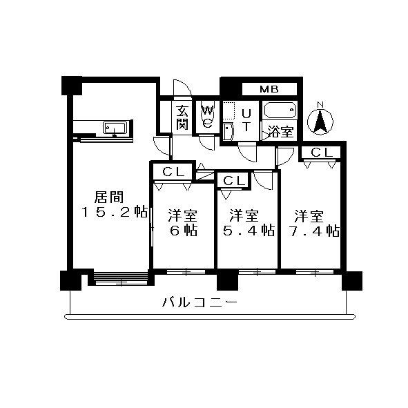 3LDK(LDK15.2帖、洋7.4帖、洋6帖、洋5.4帖)