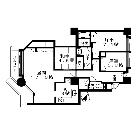 3LDK(LDK20.6帖、洋7.4帖、洋4.3帖、和4.5帖)