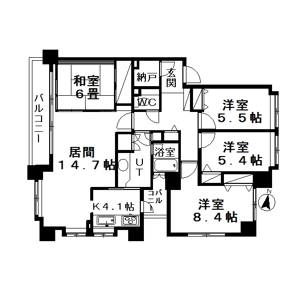 4LDK(LDK18.8帖、洋8.4帖、洋5.5帖、洋5.4帖、和6帖)