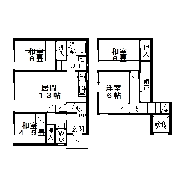 4LDK(LDK13帖、洋6帖、和6帖、和6帖、和4.5帖)