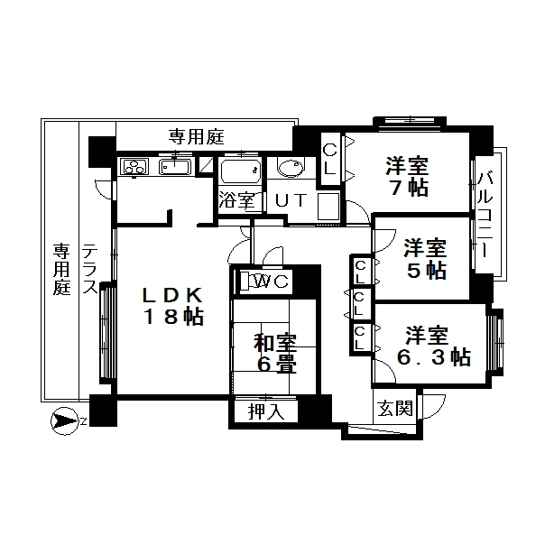 4LDK(LDK18帖、洋7帖、洋6.3帖、洋5帖、和6帖)