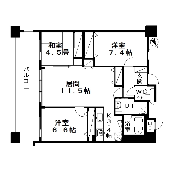 3LDK(LDK14.9帖、洋7.4帖、洋6.6帖、和4.5帖)