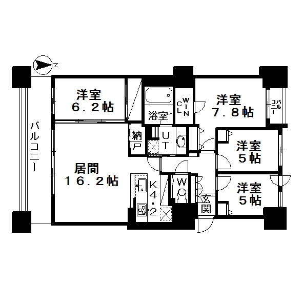 4LDK(LDK20.4帖、洋7.8帖、洋6.2帖、洋5帖、洋5帖)
