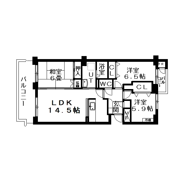 3LDK(LDK14.5帖、洋6.5帖、洋5.9帖、和6帖)