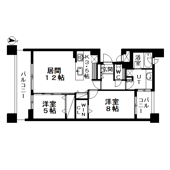 2LDK(LDK15.5帖、洋8帖、洋5帖)