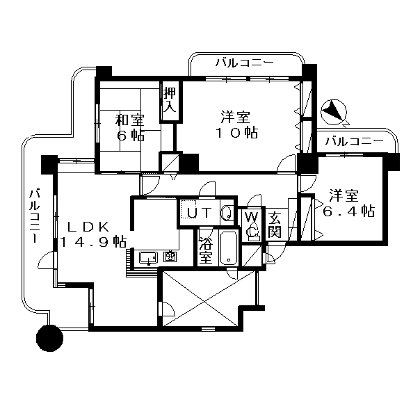 3LDK(LDK14.9帖、洋10帖、洋6.4帖、和6帖)
