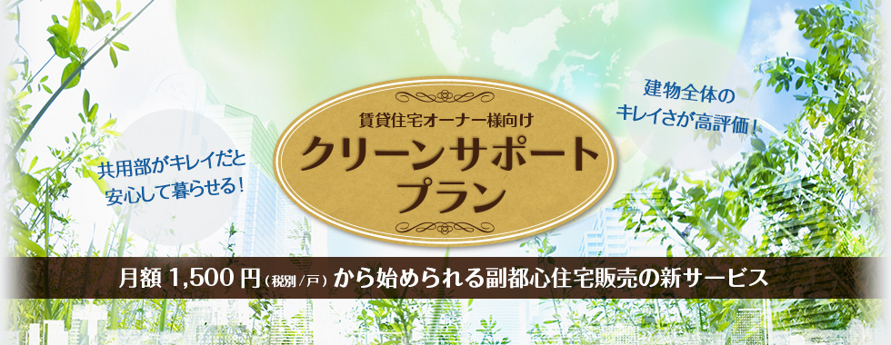 オーナー様・入居者様の気持ちに応えた新管理プランができました。賃貸アパート・マンションの美観維持は重要であり、入居率を維持する為の差別化の一つです。