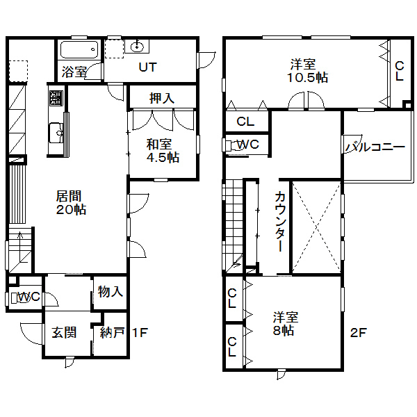 3LDK(LDK20帖、和4.5帖、洋10.5帖、洋8帖)