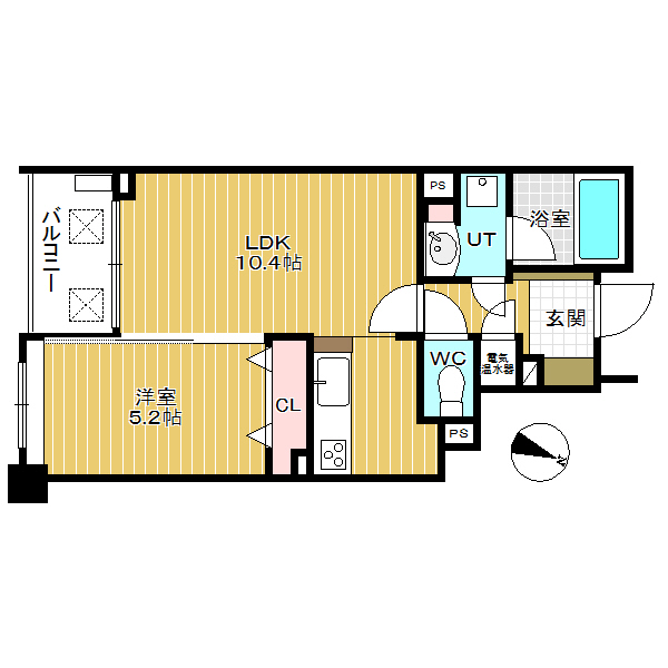 1LDK(LDK10.4帖、洋5.2帖)