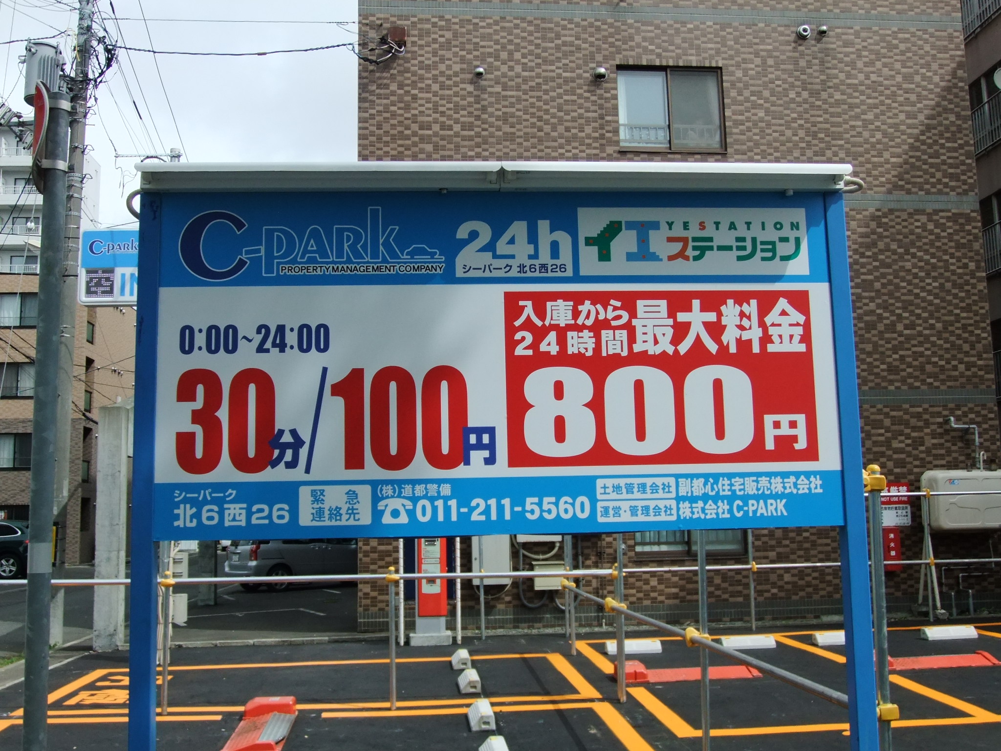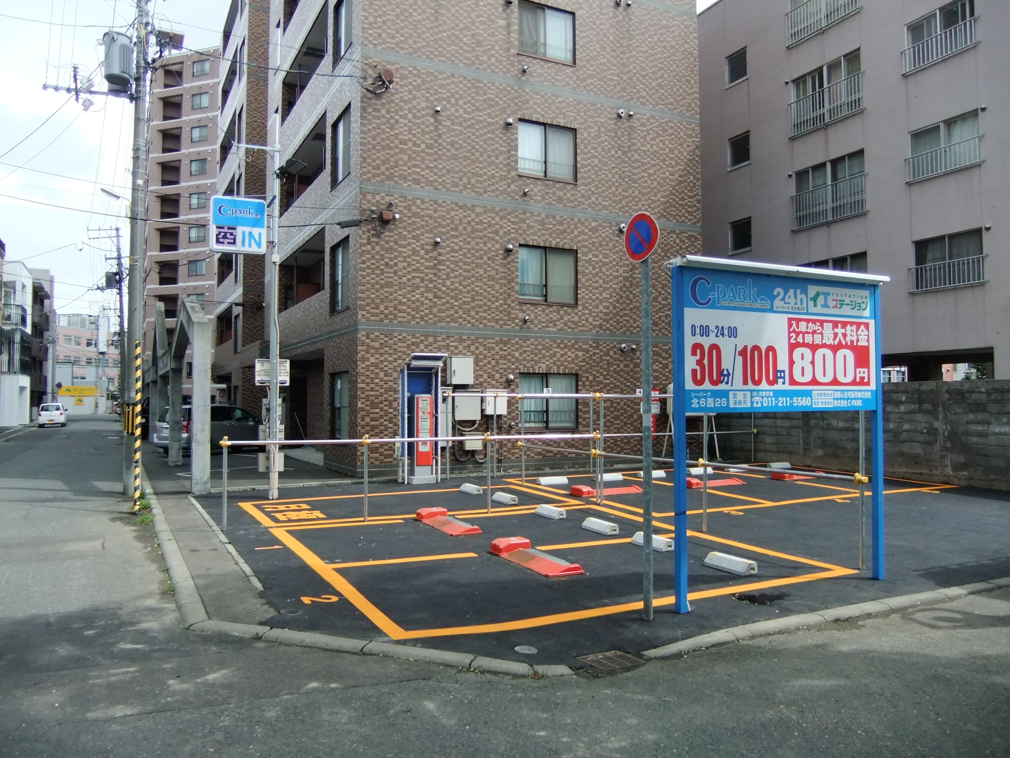 札幌市中央区北6条西26丁目に時間貸し駐車場が本日オープンしました! 料金は0:00〜24:00 30分/100円 入庫から24時間最大料金800円となります。